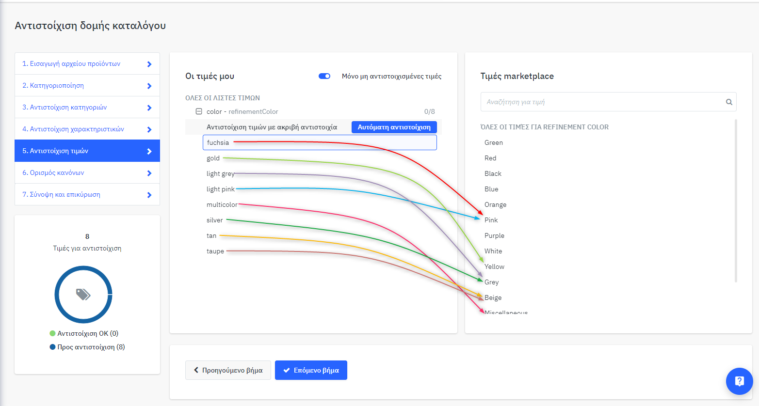 Αφού αντιστοιχίσετε όλες τις τιμές στα αριστερά, πατήστε "Επόμενο βήμα".