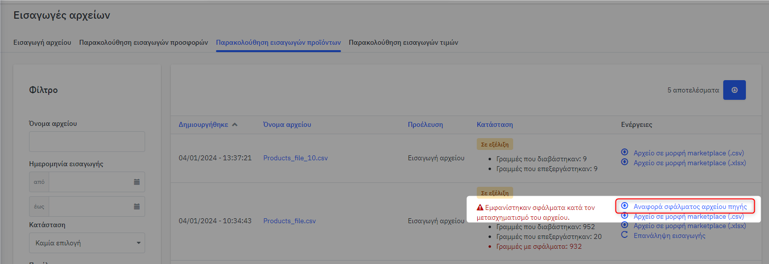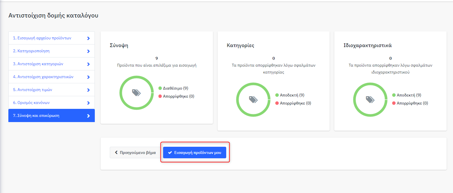 Αφού διορθώσετε τυχόν σφάλματα, πατήστε «Εισαγωγή προϊόντων μου»: