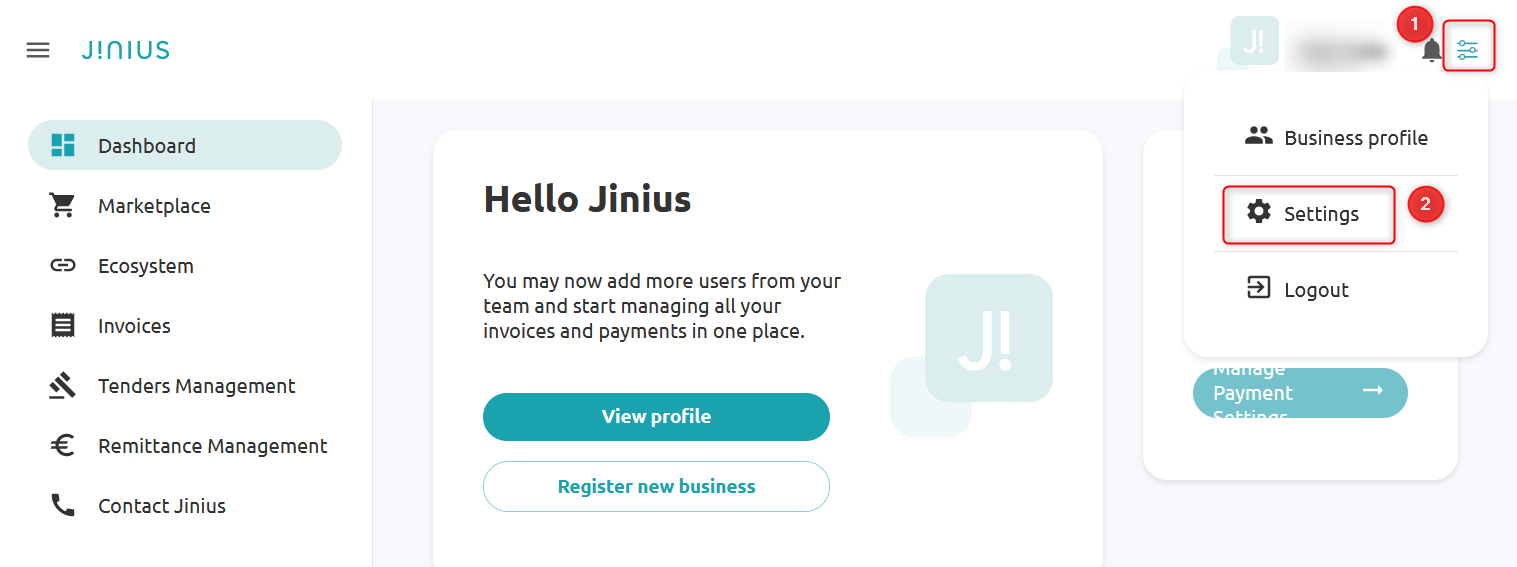- Log into your Jinius Business account from here: https://b2b.jinius.com.cy/login