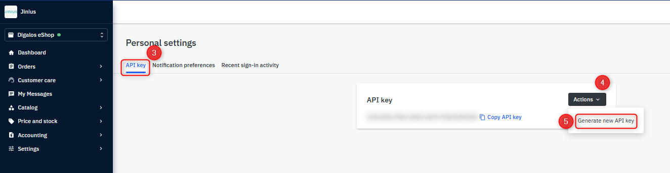 - Go to the "API Key" tab. Here, if there is already a value in the "API Key" field, you can go to step #5.