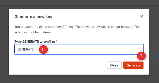 - In the window that appears, type the word "GENERATE" and press "Generate".