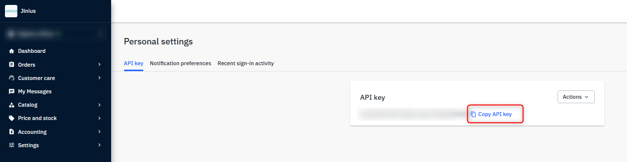 If you want to integrate your own system with the Jinius Marketplace using the available APIs, you will most likely need the API Key of your account.