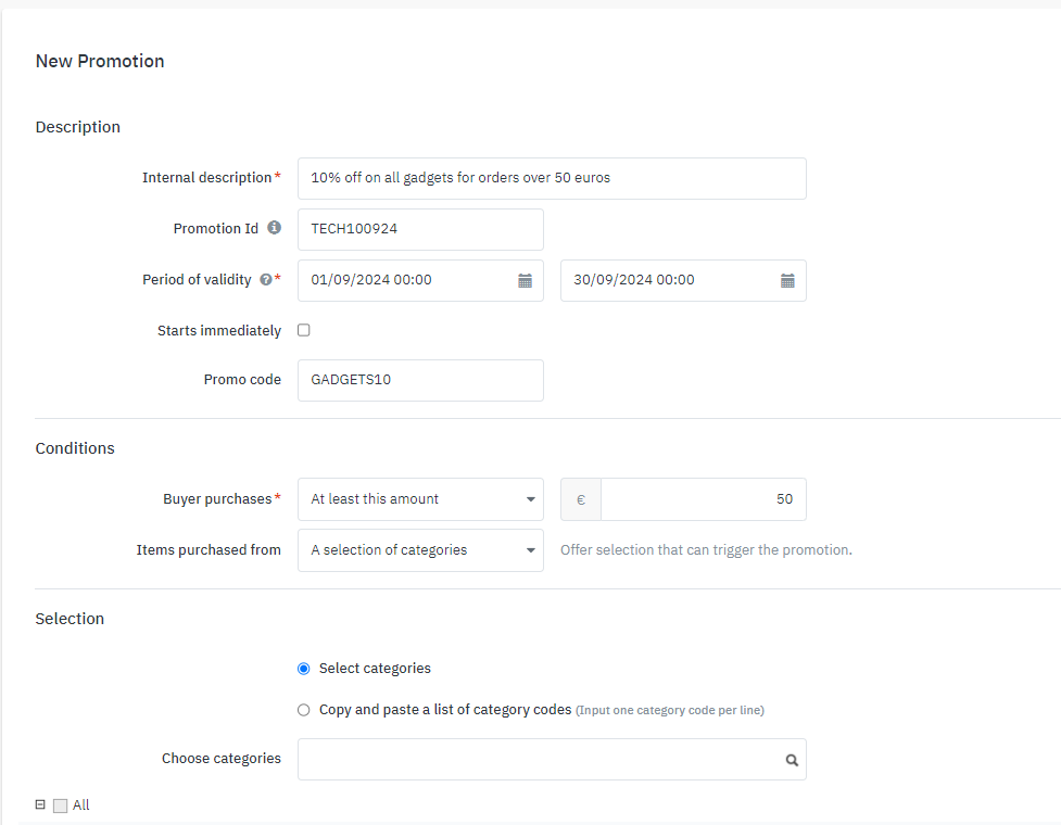 When creating a Promotion, a Public Description is required in the corresponding fields so that it appears on the Marketplace. The description you enter must be provided in English and Greek in one of the following formats: